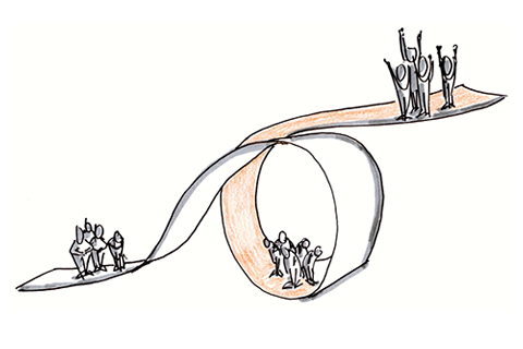 Schon einmal erlebt? Die emotionale Berg- und Talfahrt im Verlauf einer Veränderung. Abnehmen kann Ihnen das niemand. Aber leichter machen, indem mit passender Begleitung und Unterstützung dieser Prozess etwas kürzer und weniger schmerzhaft ausfällt. Und das ist und bleibt ein Prozess, für den Sie und alle anderen von der Veränderung betroffenen Menschen etwas Zeit brauchen.