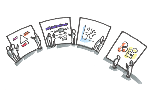 • Templates: Vorstrukturierte „Arbeitsposter“ für Gruppen zum Erzielen von Ergebnissen