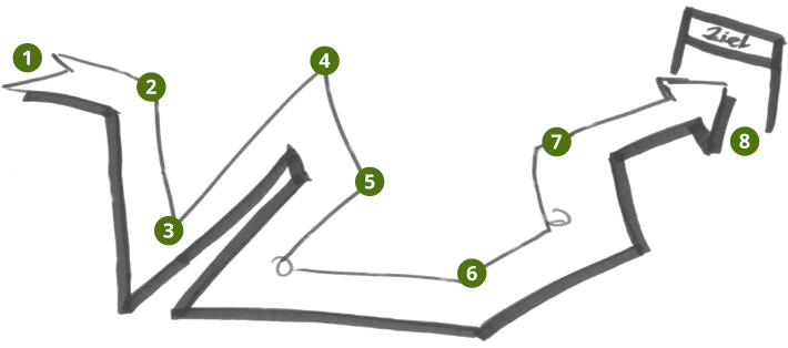 Nun stellen sich Veränderungen in fast allen Fällen als Prozess dar. Diesen Prozess begleite und strukturiere ich gemeinsam mit Ihnen. Da jede Veränderung anders ist, helfen uns zwar  Grundmuster – aber zu den gewünschten Ergebnissen kommen wir mit situativer Anpassung.